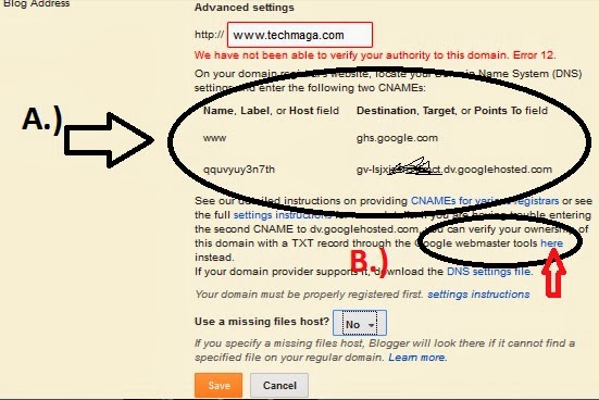 Once you have confirmed success in your verification, go back to your blogger dashboard, click on settings and try adding back your domain name. Save it and you are done.